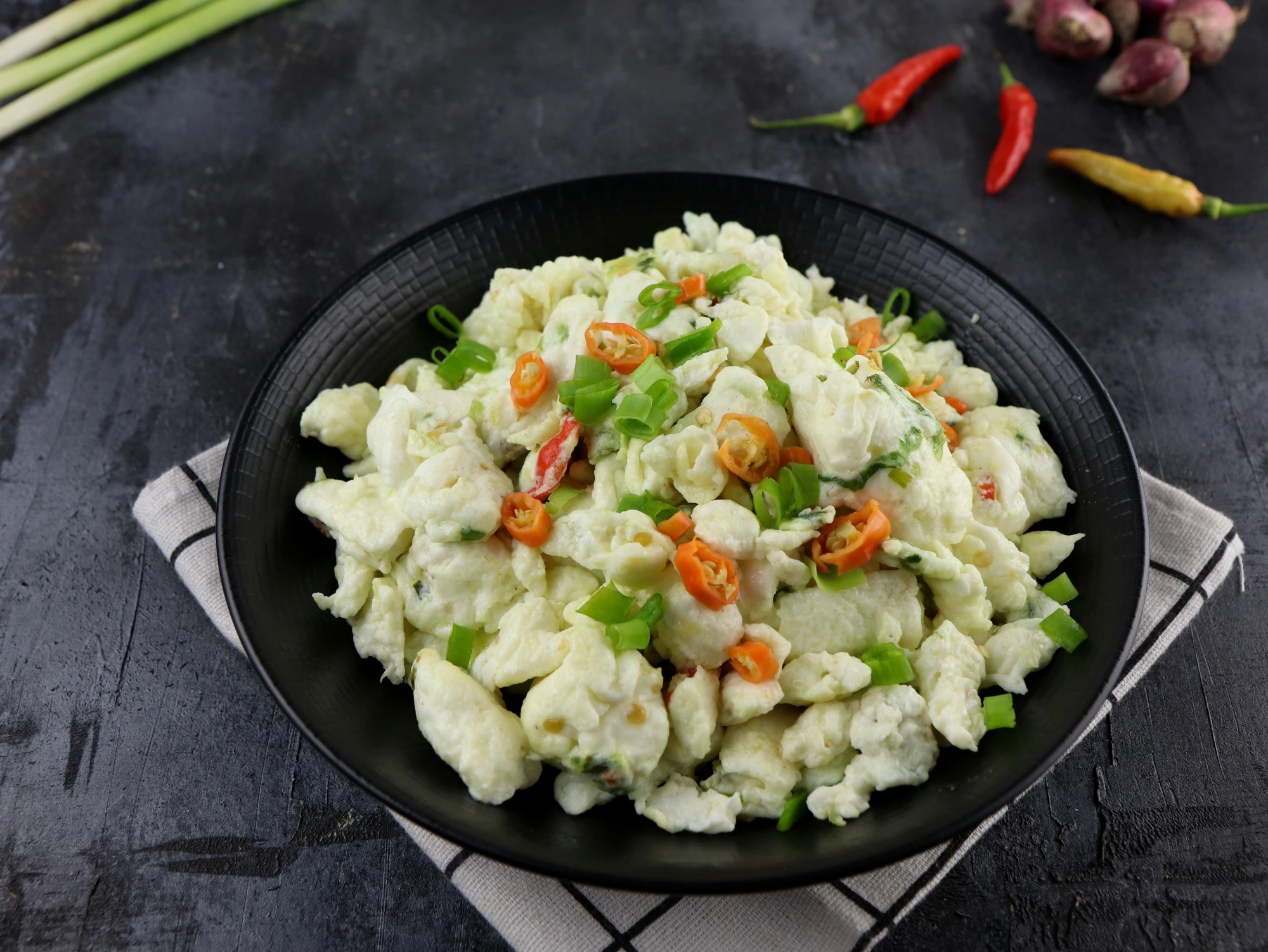 Campurkan putih telur dengan tahu yang dihancurkan, beri sedikit garam dan merica, lalu kukus sampai matang. Olahan ini teksturnya lembut dan cocok untuk kamu yang suka lauk ringan tapi tetap kaya protein.
