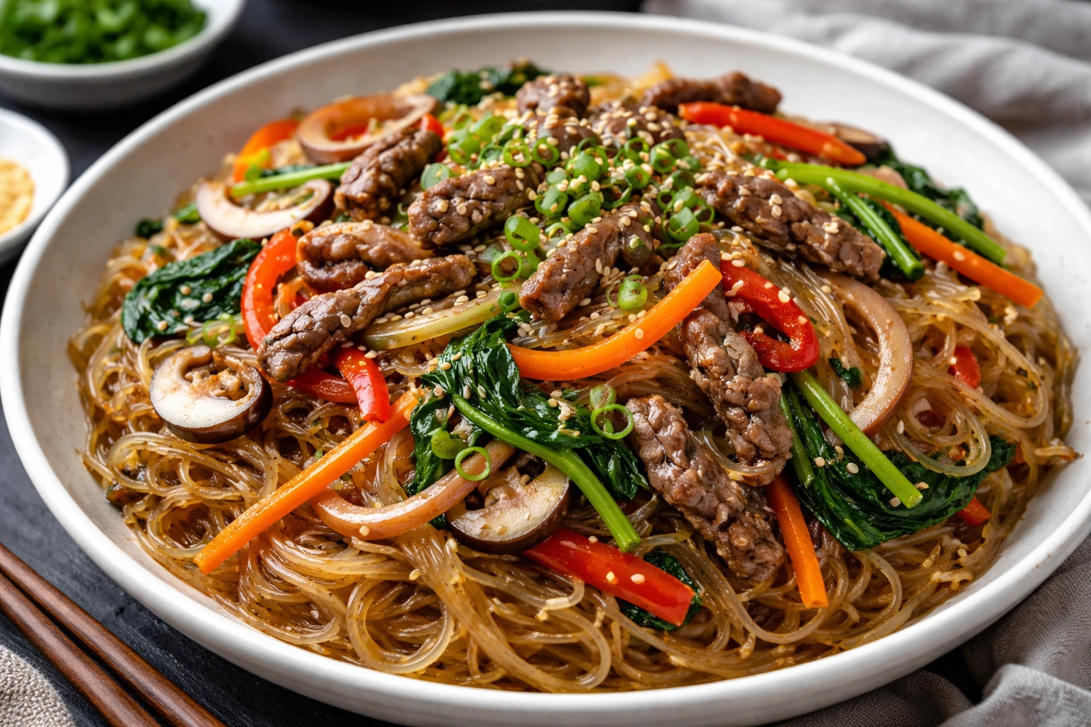 Japchae adalah mie khas Korea dari pati ubi jalar yang ditumis bersama sayuran dan daging. Meski terlihat “niat”, sebenarnya prosesnya cukup mudah. Kuncinya ada di bumbu kecap asin, minyak wijen, dan sedikit gula untuk menciptakan rasa manis-gurih yang khas.