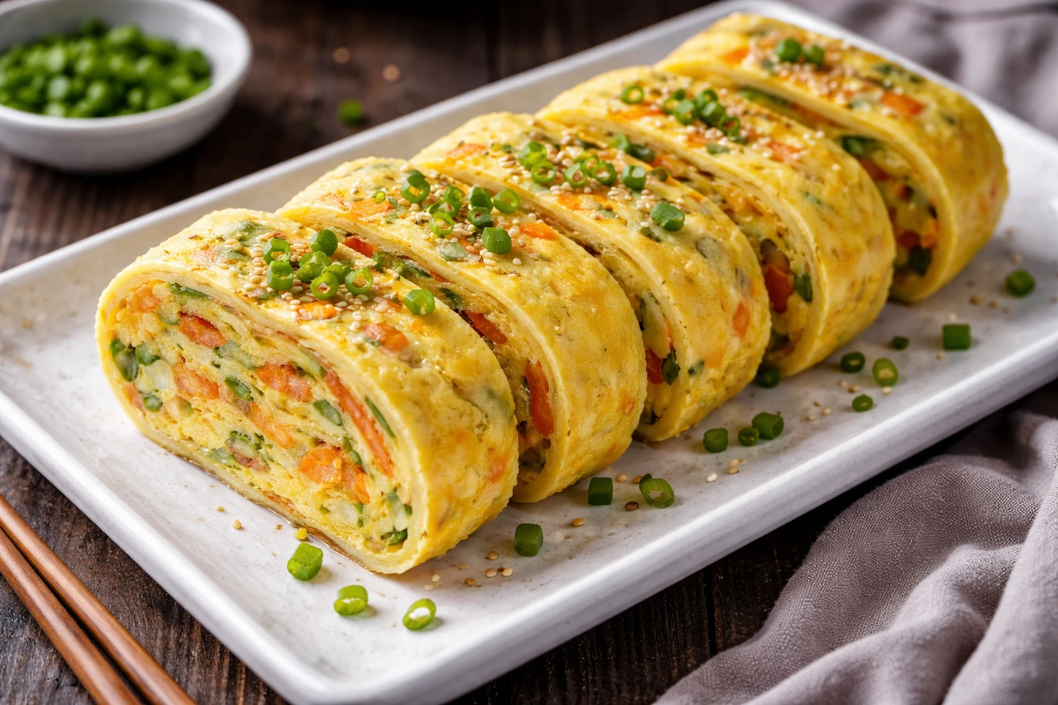 Gyeran mari adalah telur dadar gulung khas Korea yang tampilannya cantik tapi cara buatnya sederhana. Telur dikocok, lalu dimasak tipis dan digulung sedikit demi sedikit. Bisa ditambah daun bawang atau wortel agar lebih menarik.