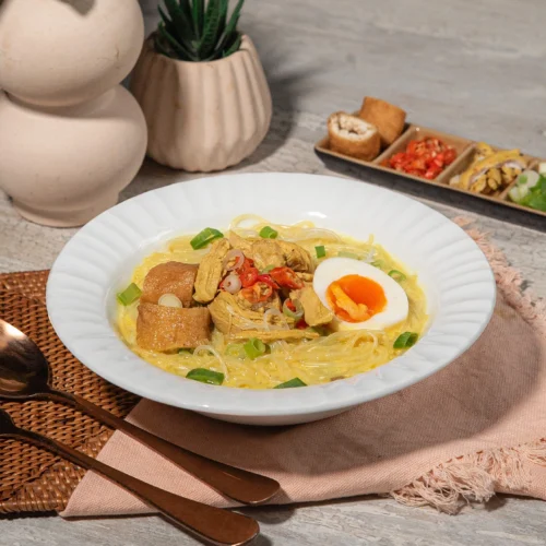- Sajikan bihun dengan tambahan kondimen tahu pong, ayam, irisan cabai dan daun pre. Siram dengan kuah kari.