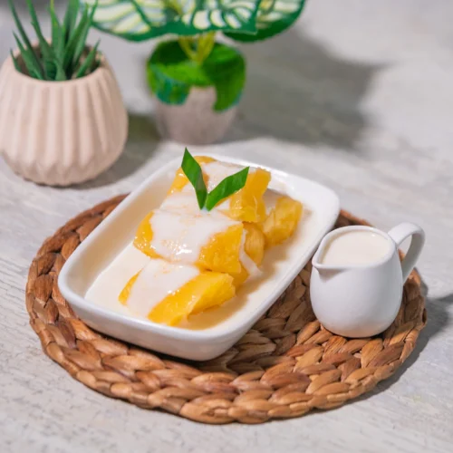 • Sajikan singkong thailand dengan disiram kuah kental. Tambahkan wijen dan daun pandan untuk garnish.