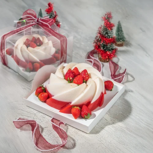 • Keluarkan dari cetakan, beri tambahan buah stroberi.