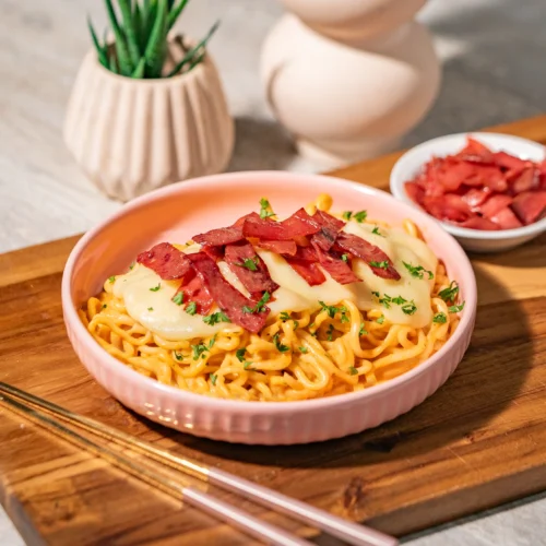 • Spicy cheesy carbonara ready to serve.